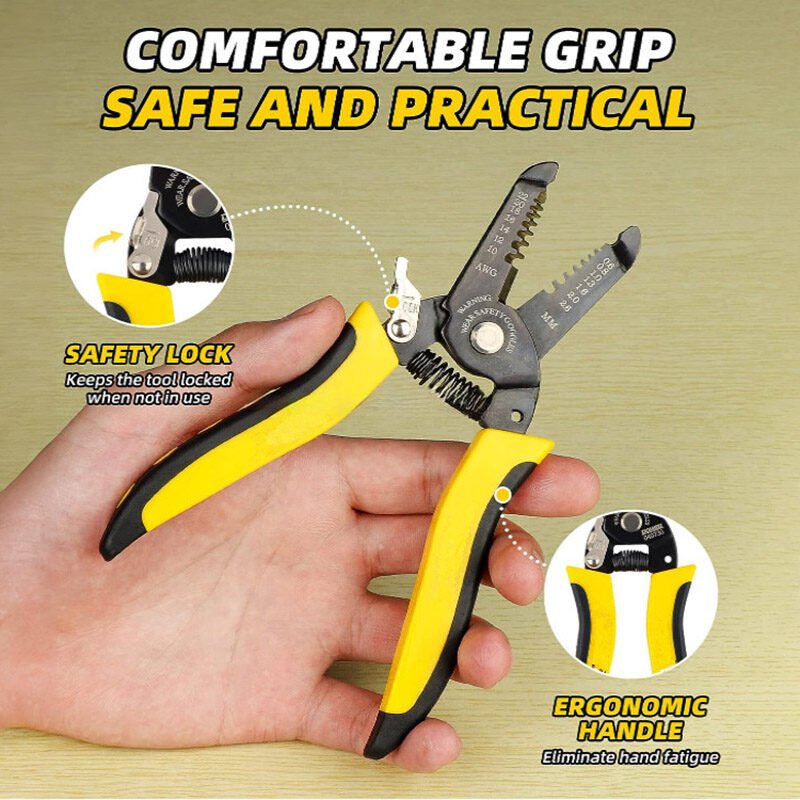 The Wire Stripper Cutter is a versatile and essential tool for any electrician or DIY enthusiast. It is made of high-quality materials and is very durable. The ergonomic handle makes it easy to grip, and the safety lock keeps the tool locked when not in use. It is a valuable addition to any toolbox.